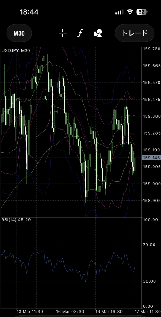 トレードでは基本的にスマホアプリのMT4を使用しています。