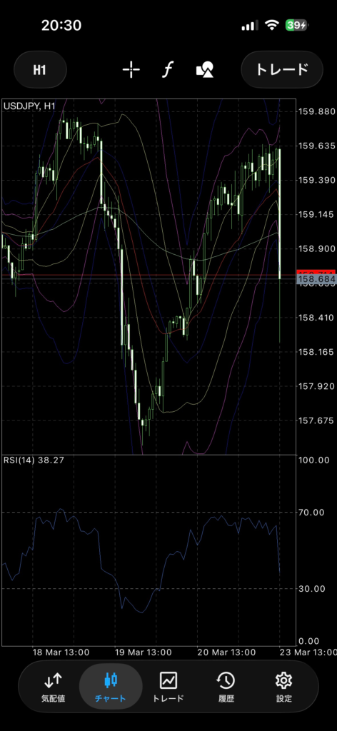 トレードでは基本的にスマホアプリのMT4を使用しています。
