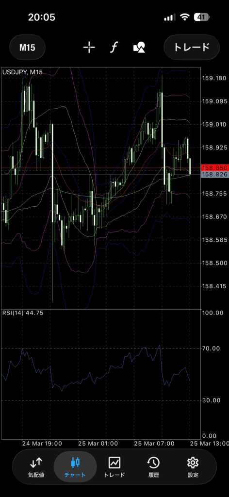 トレードでは基本的にスマホアプリのMT4を使用しています。