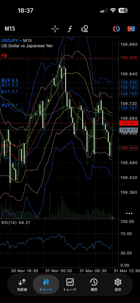 トレードでは基本的にスマホアプリのMT4を使用しています。